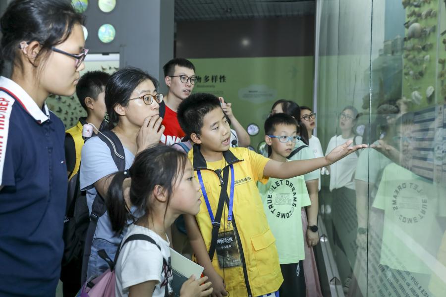 展厅里满脸好奇的孩子们手持博物护照,一边参观学习,一边填写答案。“博物护照”里包含了各展厅的知识问答,完成答题任务的孩子们在盖章台前排起长长的队,或是簇拥着负责盖章的小讲解员们询问正确答案。自然馆的科研人员、专业讲解员、志愿讲解员和小小讲解员们则承担了每晚为观众提供特色讲解的任务。尤其今年推出的特色讲解服务——科学研究人员精心准备的“标本零距离”,围绕展览和展品深层阐释科学知识或标本故事,与观众进行零距离互动答疑。每到活动举行的时段,科研人员经常被里三层外三层的观众围着,活动结束后仍然有观众围着科研人员继续发问,有的还会“借”标本留影。