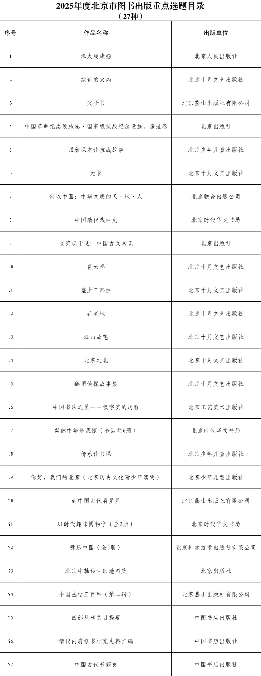 近日,北京市新闻出版局公布 “2025 年度北京市图书出版重点选题”。本次遴选,市属各图书出版单位共上报选题 129 种。经评审论证,出版社《舞乐中国》等 27 种选题入选。