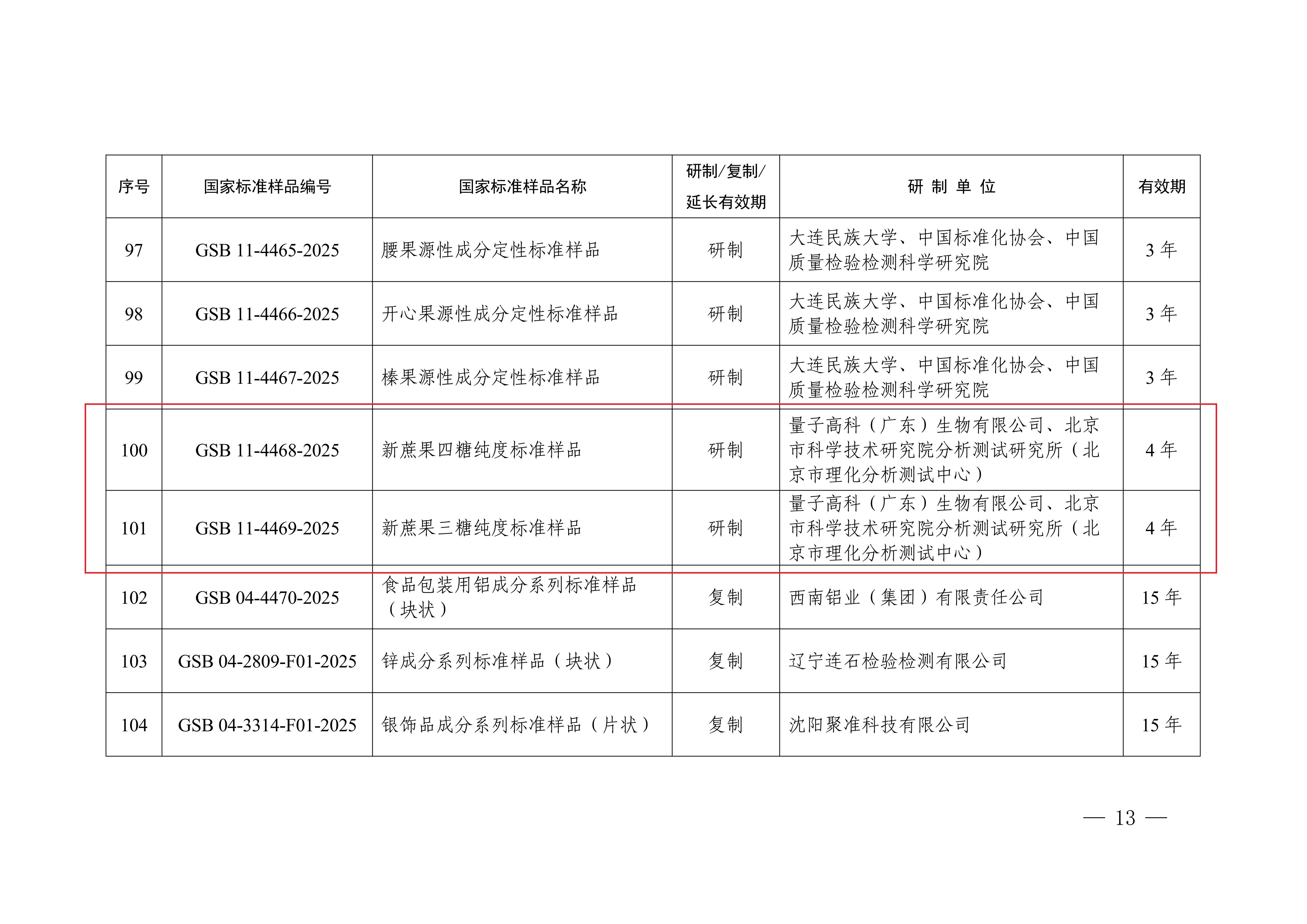 日前,国家市场监督管理总局、国家标准化管理委员会发布中华人民共和国国家标准公告(2026年第2号),由幸运彩分析测试研究所(以下简称“分析测试所”)作为第二研制单位完成的新蔗果四糖(GSB 11-4468-2025)、新蔗果三糖(GSB 11-4469-2025)两项国家标准样品批准发布,填补了国内相关标准样品的空白。