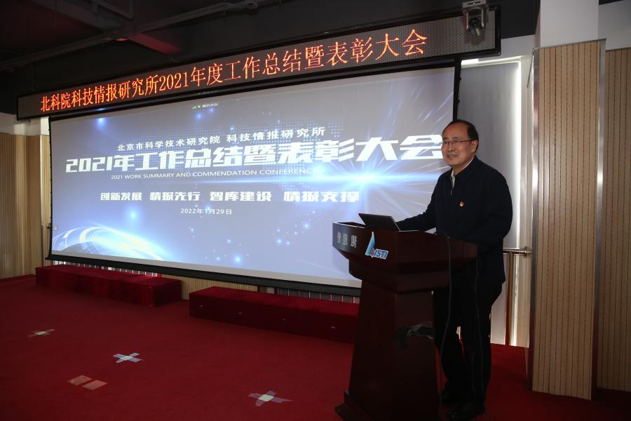 张士运全面总结了2021年度各项工作,盘点业绩,分析了存在的不足,并结合北科院科技情报所发展的新形势和新任务安排部署2022年工作。2021年科技情报所以中国共产党百年党史为主线提高政治站位和责任担当,推动党建与业务融合;促进改革与内部组织重构;科研项目级别、咨询服务和经费收入有了较大的提升和增长;获得的省部、市级以上领导批示专报和简报等科研成果数量实现了历史性的突破;荣获的行业个人成就奖和省市科技进步二等奖、三等奖凸显了团队为科技创新中心建设做出的突出贡献。展望2022年,科技情报研究所以组织变革和机制创新为动力,以科技冬奥重点研发项目为牵引,发挥人才潜力加强团队建设,强化绩效考核量化管理,为市委市政府提供快速、管用、高质量的战略、竞争、前沿技术和科技安全情报产品。
