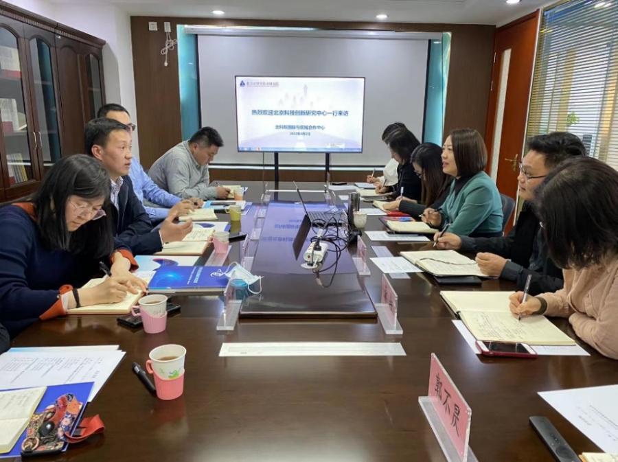 4月2日,北京科技创新研究中心主任刘彦峰一行来北科院国际与区域合作中心(以下简称“国合中心”)调研座谈,国合中心主任李军凯主持座谈。