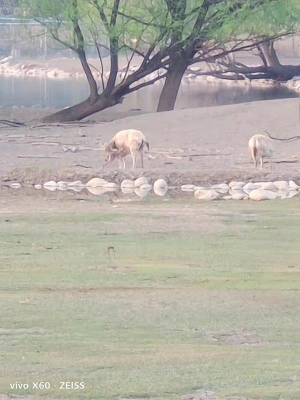 4月7日上午10点,北京麋鹿生态实验中心工作人员在巡视时,发现有只母鹿离群,独自在麋鹿保护区的小土坡附近徘徊,并且十分警觉地关注着周围的环境,有时候也会抬起尾巴,伸着脖子向后舔腹侧的被毛。经过判断,这只母鹿可能要生了!随后工作人员一直观察这只鹿,只是到了中午,仍然未见这只母鹿有生产的行为,它安静地在小土坡东南侧林子下卧着休息。