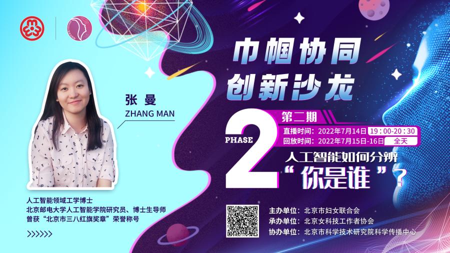第二期 “沙龙”的主题是“人工智能如何分辨你是谁”。邀请人工智能领域工学博士,北京邮电大学人工智能学院研究员、博士生导师,北京市三八红旗奖章获得者——张曼,从生物特征识别技术入手,深入浅出地介绍了人脸识别技术、虹膜识别技术和步态识别技术的原理和应用领域,并对几种常见的生物特征识别带来的安全问题进行了案例分析。
