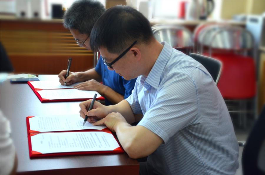 罗欣与张学刚现场签订合作协议
