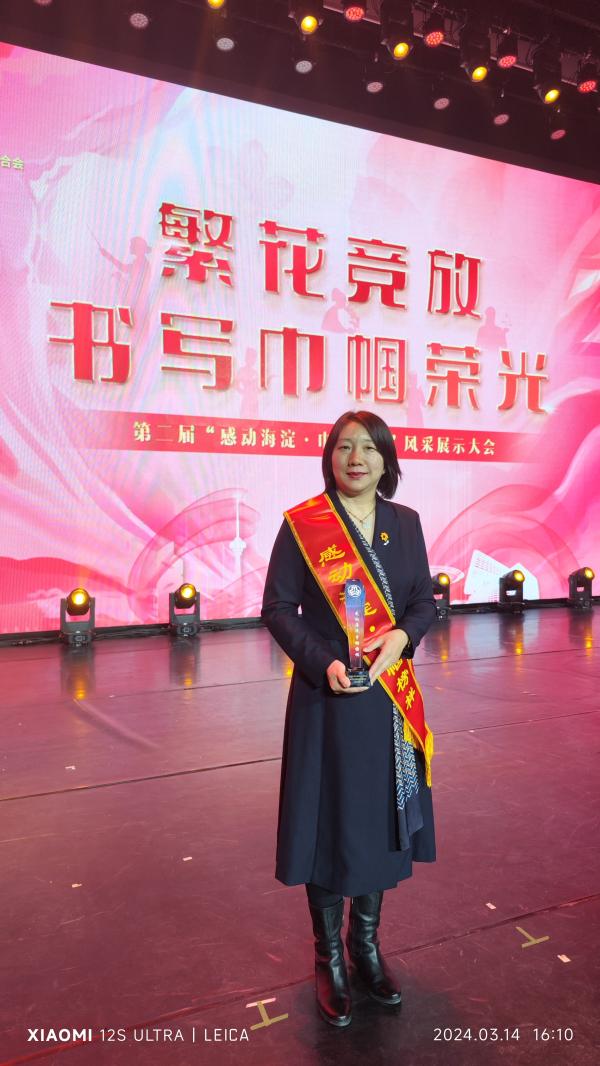 3月14日,由北京市海淀区妇女联合会主办的“繁花竞放书写巾帼荣光”第二届“感动海淀·巾帼榜样”风采展示大会在中国宋庆龄青少年科技文化交流中心成功举办。北京市妇联党组书记、主席张雅君,海淀区委书记张革、区人大主任刘长利、区委副书记杨仁全,区委常委、政法委书记、区委办公室主任程培衡,区委常委、宣传部部长齐慧超、区政协副主席赵小云出席大会,并为获得“感动海淀·巾帼榜样”“感动海淀·巾帼先进集体”称号的先进个人和集体颁奖。