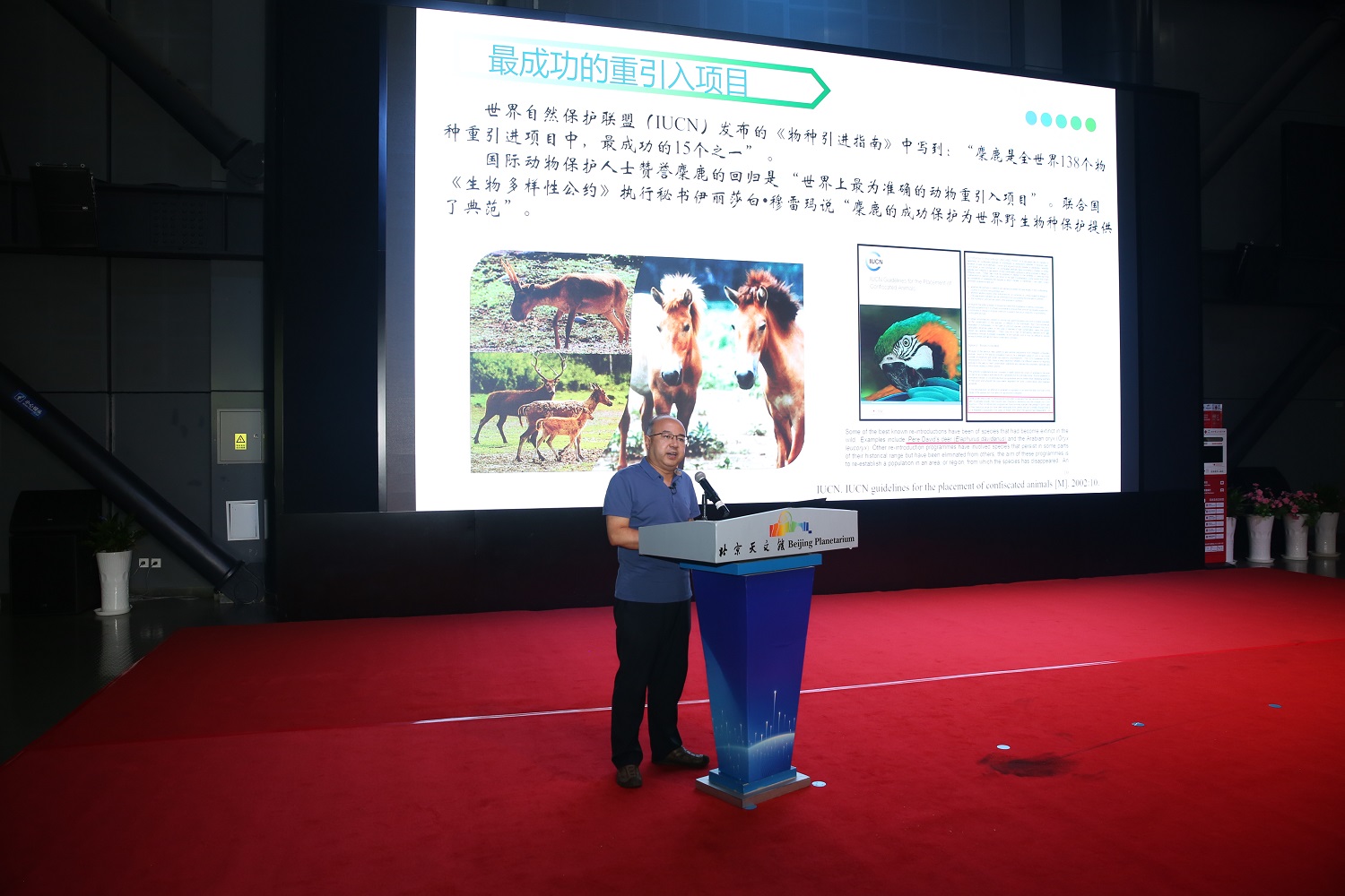北京麋鹿生态实验中心主任白加德分享了题为《麋鹿保护 中国样板》的科学故事。故事将麋鹿的起源与演化、麋鹿的科学发现、麋鹿百年海外生涯、麋鹿回归祖国、国内麋鹿种群复壮作为时间主线,生动阐释了“国家兴则麋鹿兴,生态兴则文化兴”的理念。