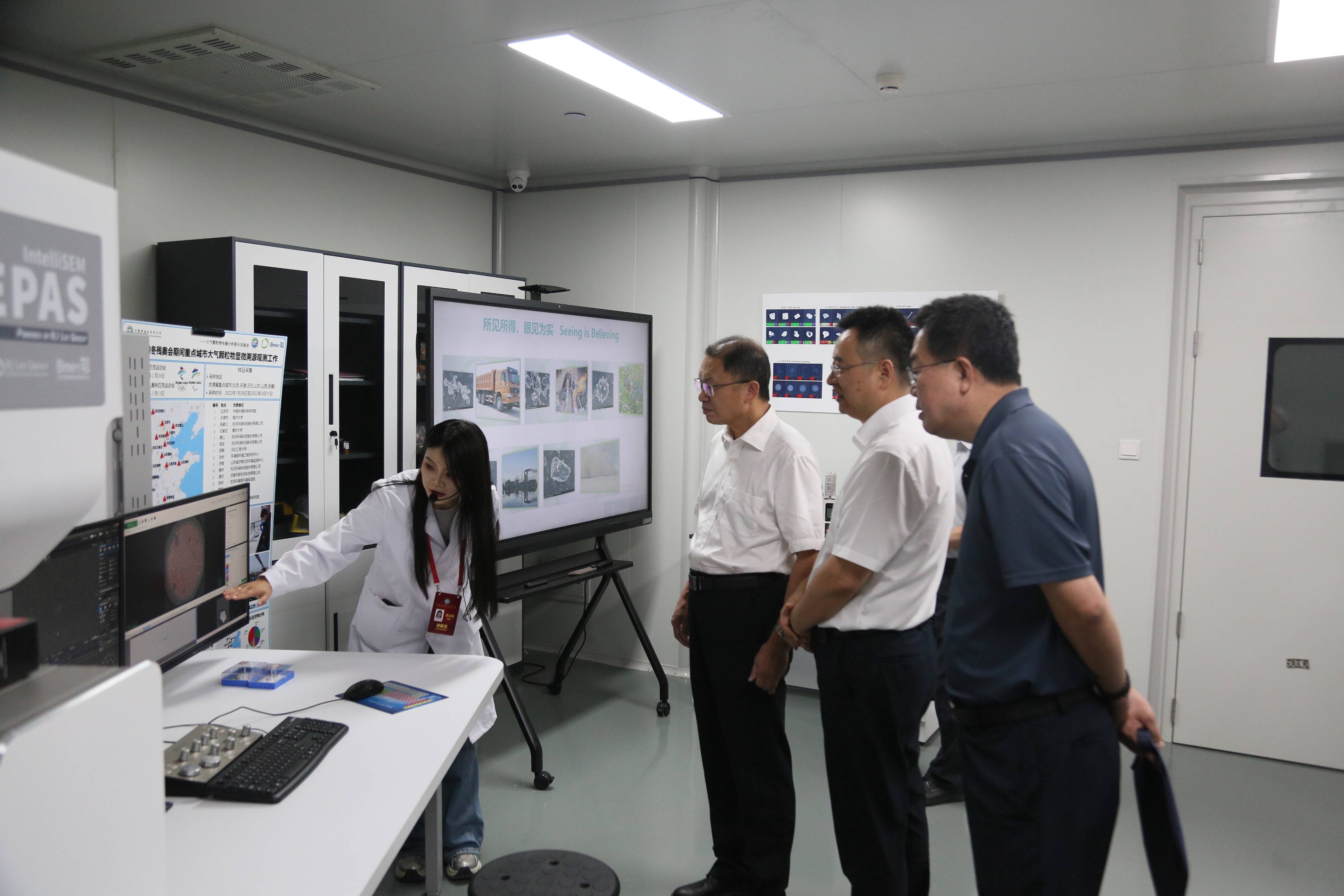 座谈会前,伍建民一行参观了中国环科院综合实验中心、湖泊水污染治理与生态修复技术国家工程实验室、生态环境部机动车污染控制与模拟重点实验室,并同相关负责人员深入交流。