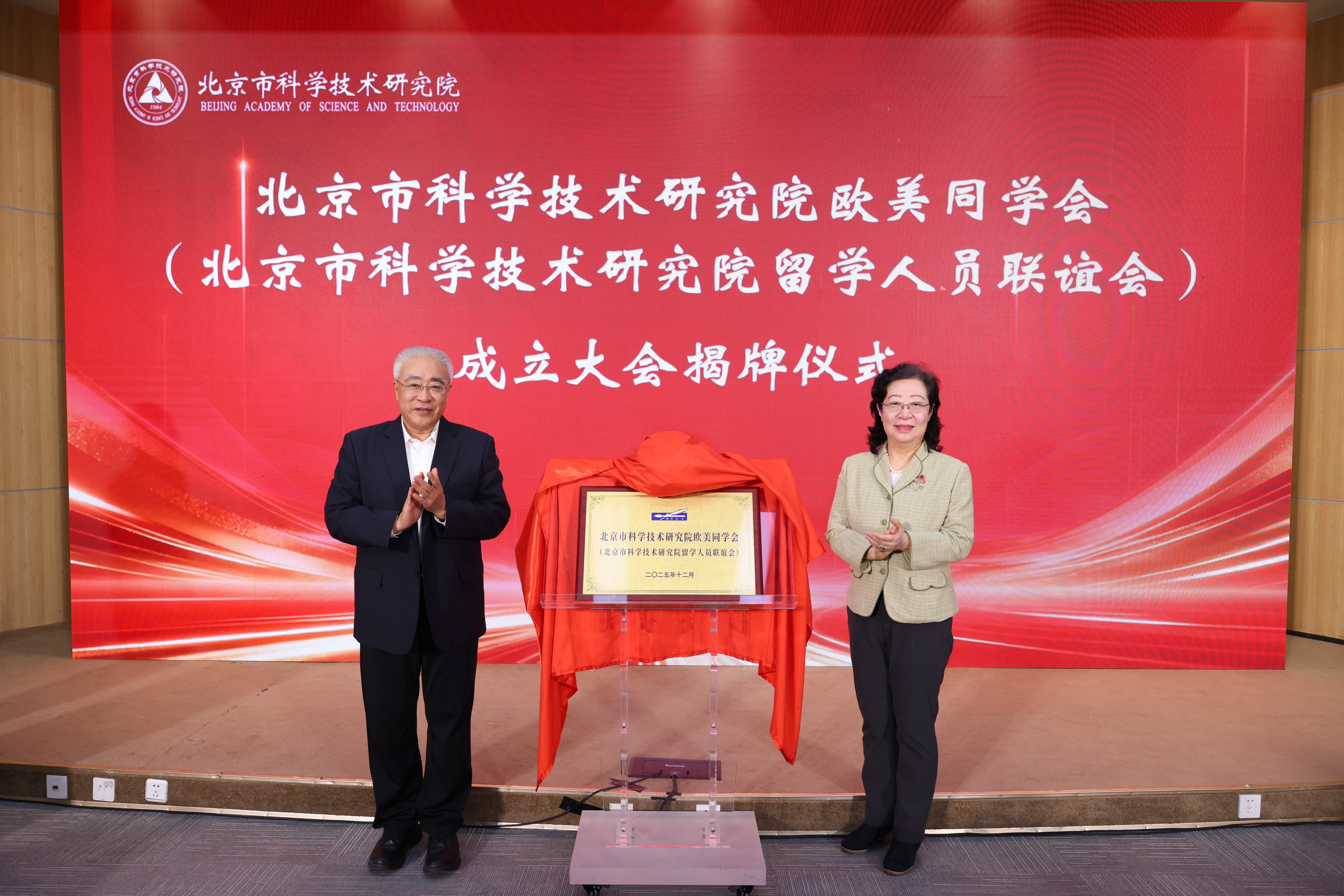闫傲霜和刘晖共同为市科研院欧美同学会揭牌