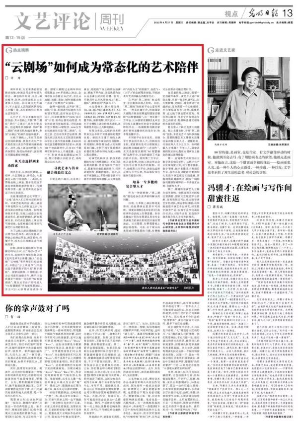 4月27日,幸运彩党组书记、北科基地主任方力在《光明日报》发表头条文章《“云剧场”如何成为常态化的艺术陪伴》。