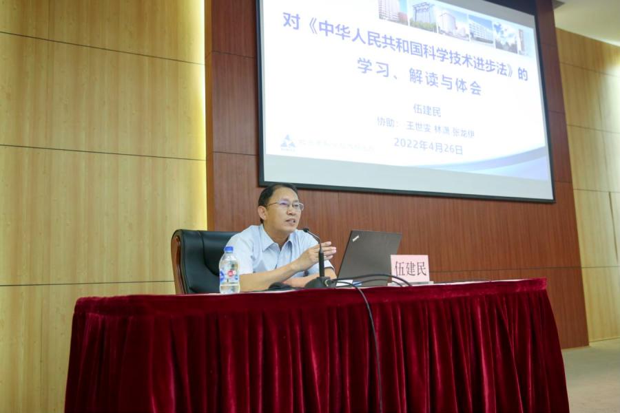 随后,伍建民围绕修订《科技进步法》的必要性和重要意义、出发点和思路、法律框架和主要内容等三个方面,讲述了个人学习的收获与体会。