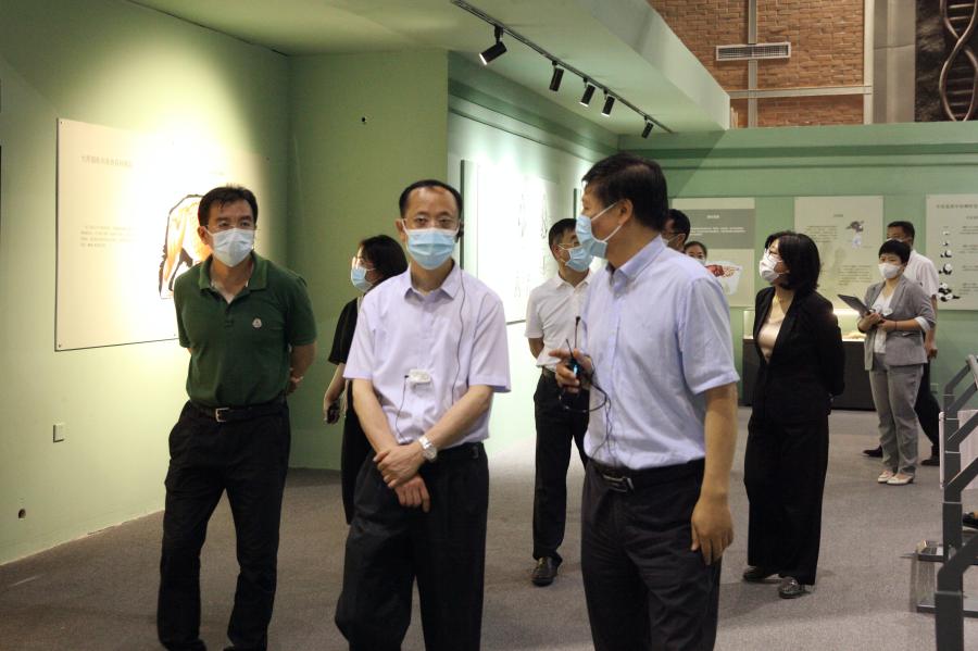顾玉才实地调研了“古爬行动物”“人之由来”“神奇的非洲”等陈列展厅,并到藏品库房详细了解了博物馆藏品保护与利用情况,听取了关于自然馆近年来在科研、展览、藏品收藏和科普教育等方面所做的工作。