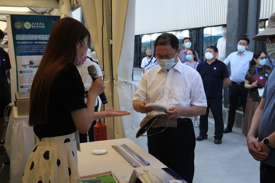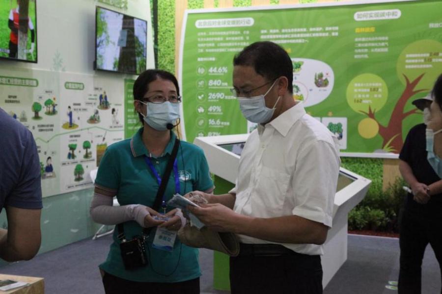 随后,伍建民来到室外展区,对北科控股、辐射所、麋鹿中心、智慧养老所、国服中心、天文馆等六家院属单位的SiC JBS功率器件、多彩生物、鹿角探究研学课、麋鹿图案雕版印刷主题押花、低碳之“鹿”、智慧居家养老应用场景展示、老年人认知测评与训练系统、花样滑冰机器人、VR滑雪眼镜、天外来客、火星基地等展项逐一调研。