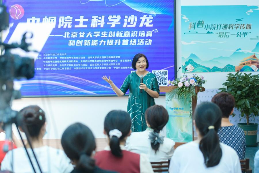 张雅君在致辞中表示,去年以来,市妇联协同全市多部门以首善标准实施“科技创新北京行动”,特别是在全国率先成立北京女科技工作者协会。协会广泛凝聚女科技工作者,紧紧抓住创新发展两翼,展现巾帼智慧与担当。作为中关村论坛的预热,聚焦巾帼名师做科普开展活动,充分体现了首都女科技工作者深厚的科学家情怀和强烈的社会责任感。希望共同努力不断释放女性科技创新潜能,在首都经济社会高质量发展中贡献“她”智慧、绽放“她”力量。
