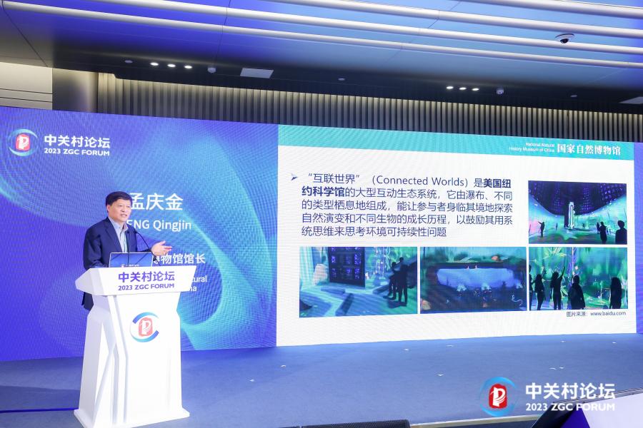 作为本次论坛的承办方之一,自然馆馆长孟庆金在活动现场做主题为《促进人、自然、社会和谐:新时代自然博物馆的使命》的演讲,介绍了自然博物馆的创新离不开数字技术的创新应用,并通过“自然观和价值观”“传播科学知识,弘扬科学精神”“提升公民科学文化素养”“推进生态文明建设”四方面深入剖析新时代自然博物馆的重要使命。
