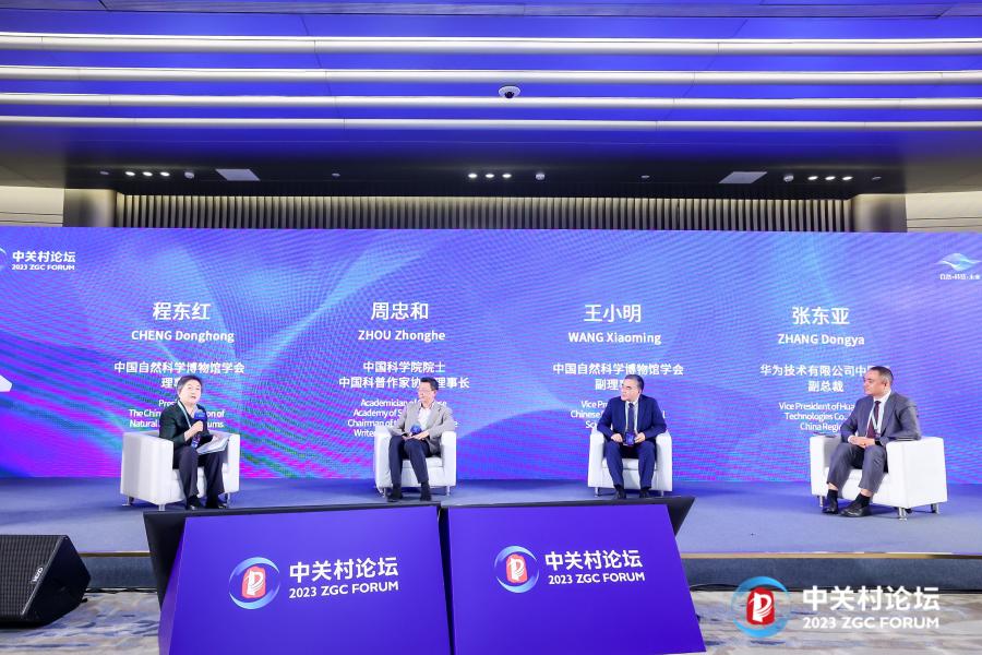 在“高峰对话”中,周忠和院士、中国自然科学博物馆学会理事长程东红、中国自然科学博物馆学会副理事长王小明及华为技术有限公司中国区副总裁张东亚,围绕科技创新与自然博物馆可持续发展进行深入探讨,分别围绕科学家做科普、自然博物馆从事科学传播的特点与需求,以及科技公司如何为科普事业和博物馆传播事业的需求赋能等话题进行了热烈讨论,发表了各自的真知灼见。