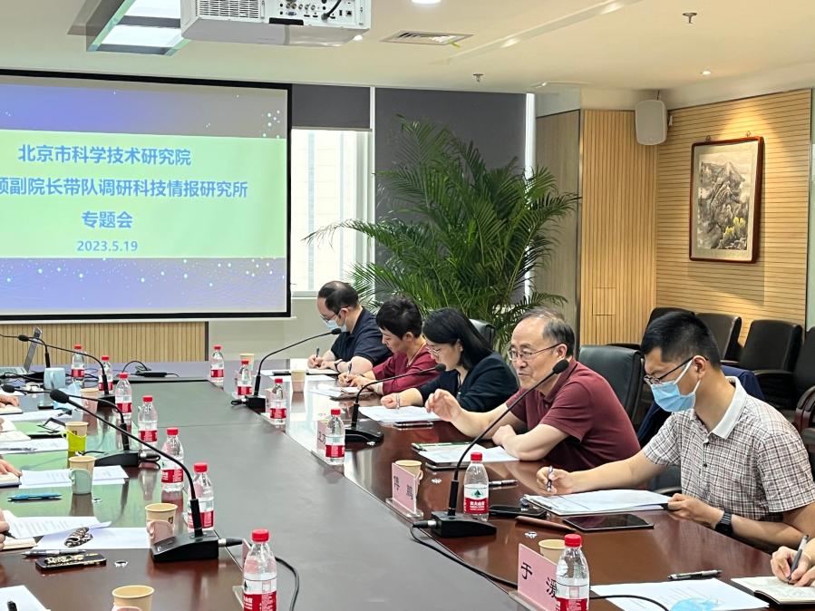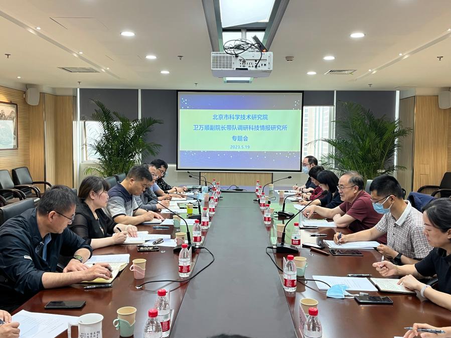 5月19日,幸运彩党组成员、副院长卫万顺赴科技情报研究所(以下简称“科技情报所”)开展主题教育专题调研,实地了解科技情报所在完善科研主动选题和信息情报分析机制建设、前沿技术追踪与查新的具体进展,围绕科技人才队伍建设与人才培养、如何进一步发挥在北京国际科创中心建设中的作用等问题开展座谈交流。