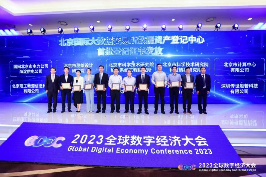 同时,我院城市系统工程研究所、科技情报研究所和北京市计算中心的政务文本、科情头条、城市内涝灾害风险研判、小分子药物等7项数据获颁数据资产登记证书。我院与北京市测绘设计研究院等10家单位成为北京国际大数据交易所数据资产登记中心首批获颁证书单位,其中我院有3家位列其中,充分彰显了我院在数据要素领域的先行优势。