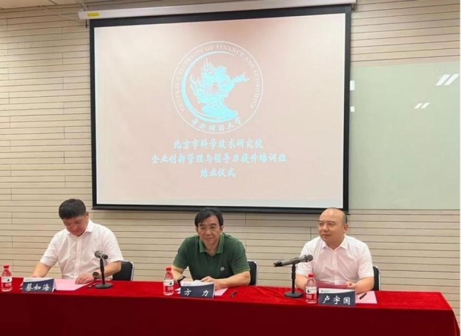 为强化企业战略管理,提升企业负责人领导力,助力院属企业高质量发展,8月15日-18日,北科院在中央财经大学举办了为期4天的“企业创新管理与领导力提升”专题培训班。本次培训安排了国有企业基层党建、宏观经济形势分析、营销战略管理、财务与税收、领导力提升、创新思维等6大板块课程。院领导卢宇国、中央财经大学继续教育学院院长蔡如海出席开班式、结班式并致辞。院党组书记方力出席结班式并讲话。