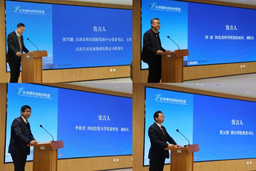 随后,天津市科技创新发展中心党委书记、主任张雪颖,河北省科学院党组成员、副院长刘波,河北经贸大学党委常委、副校长李桂君、邢台学院党委书记贾云霄等4家联盟副理事长单位代表,就联盟成员单位发挥联盟创新资源优势、加强科技协作、推动京津冀区域创新链、人才链、资本链、产业链融通发展,深化产学研交流合作平台与区域产业协作,加强组织和服务能力建设,助力京津冀协同创新等议题做了讲话。欧亚太平洋协会、中关村全球高端智库联盟为京津冀科研院所联盟第二届理事会会议的召开发来贺信。