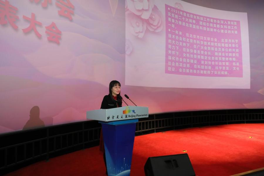 伍建民在致辞中指出,2023年以来,北京女科协成绩斐然,硕果累累,在引领带动广大女科技工作者更好服务首都高质量发展方面发挥了重要作用,为推进北京国际科技创新中心建设和公民科学素养提升作出了积极贡献。北科院作为北京女科协的依托单位,将一如既往地将北京女科协工作纳入全院工作整体布局,为北京女科协的高质量发展持续注入动能。他希望北京女科协能够持续强化自身建设,围绕高标准服务广大女科技工作者和高质量参与北京国际科技创新中心建设等工作目标,持续加强对广大女科技工作者的凝聚力、向心力和吸引力,持续夯实科技服务品牌建设的组织力、引领力和服务力,持续提升女科技工作者深度参与科技治理的竞争力、创新力和影响力。