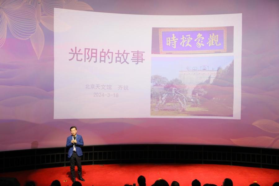 北京天文馆副馆长齐锐作了《光阴的故事》科普报告。他用生动的语言和恰如其分的比喻,讲述了时间为何物、如何而来、如何计算等科普知识,他还结合《易经》向大家分享了中国古人的宇宙观,展示了中华优秀传统文化的魅力。